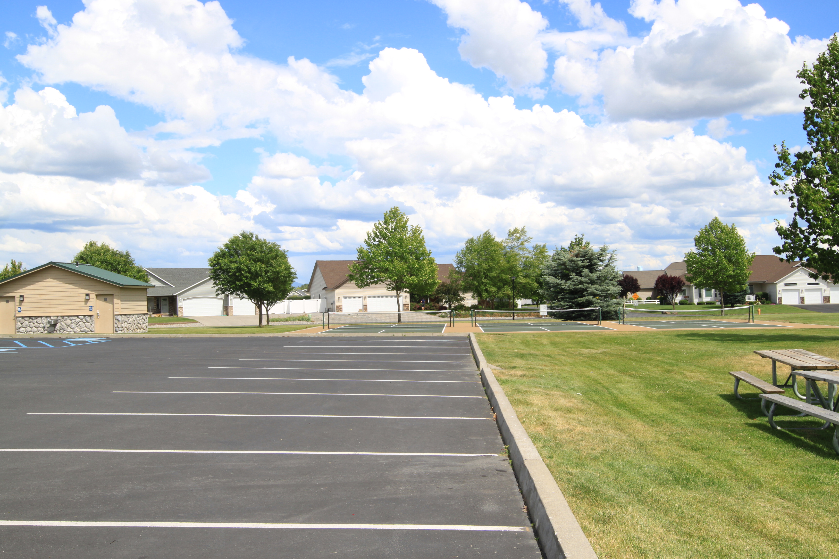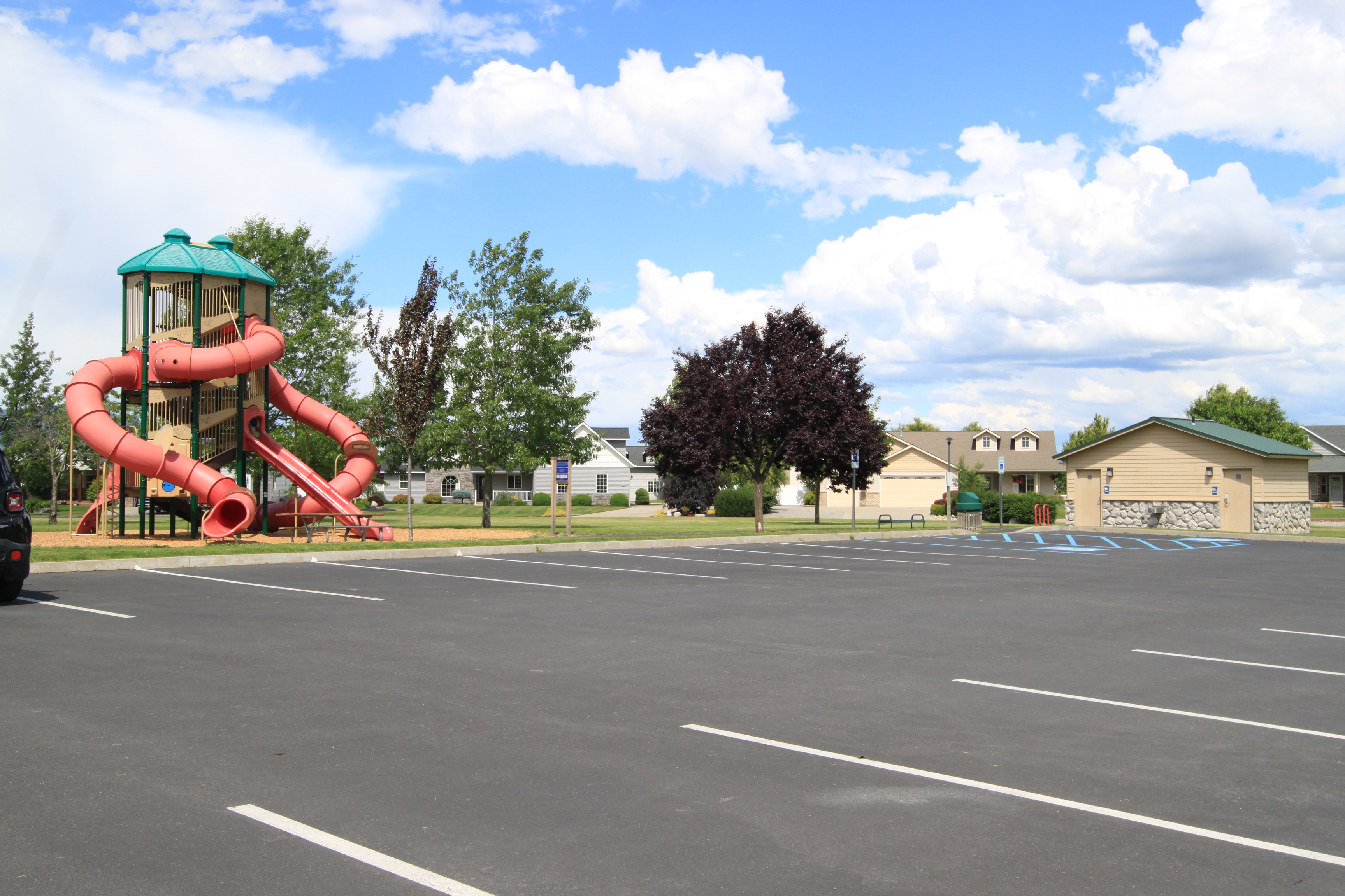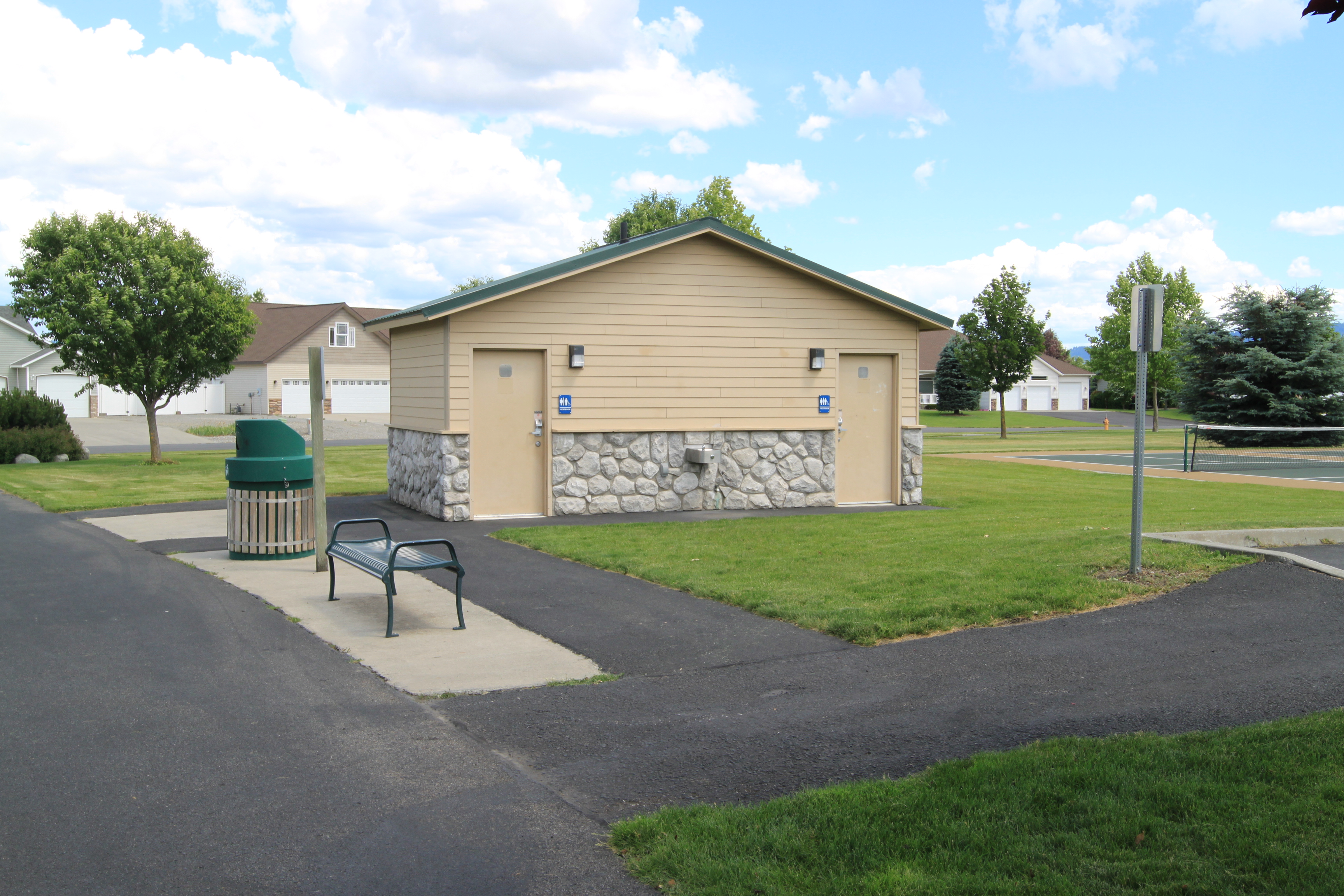 Lots of room in this park with tennis courts, ball field, bathrooms, playground, and parking.